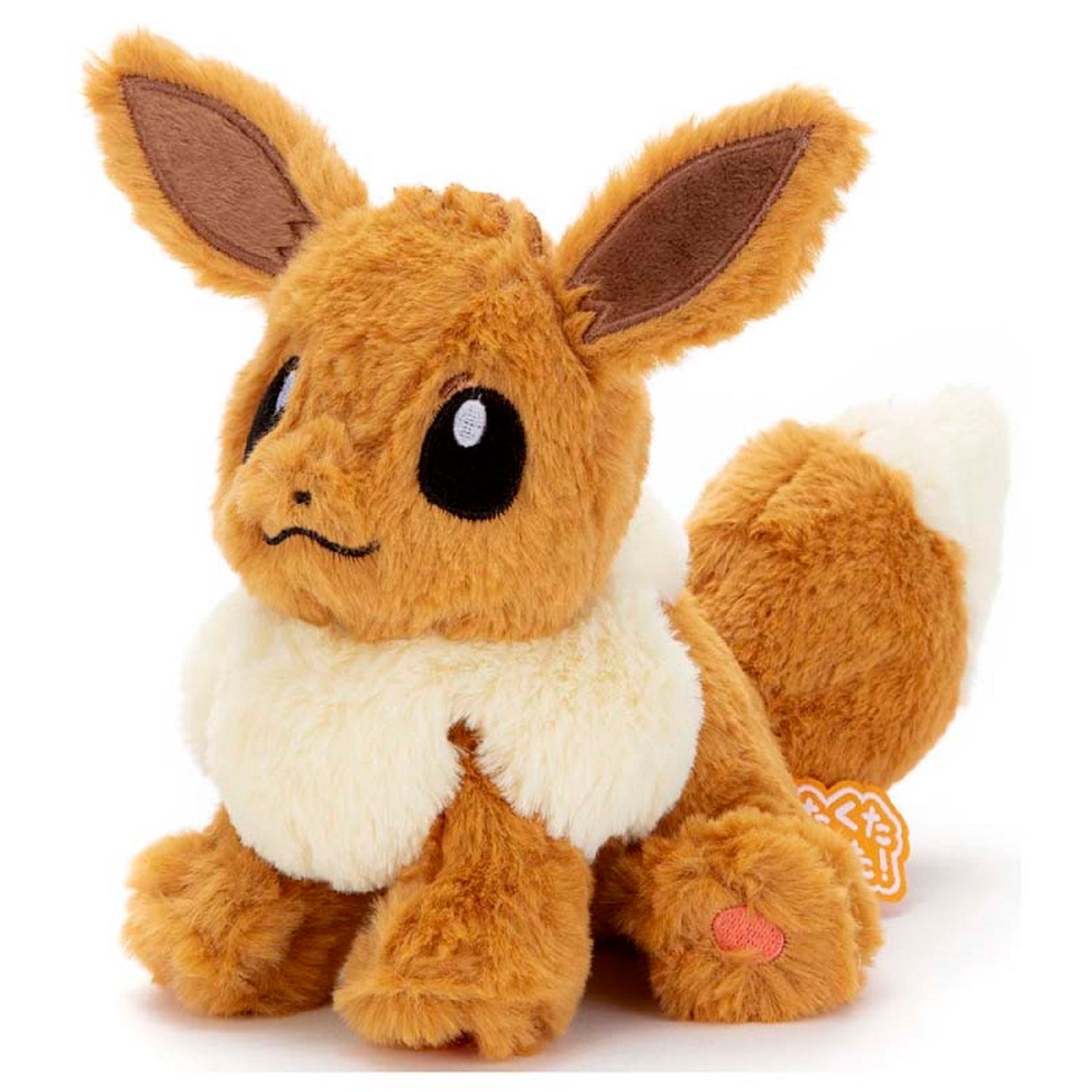 Dieses süße Evoli-Plüschtier sieht zwar ganz entspannt aus, kann aber trotzdem von selbst sitzen – einfach zum Verlieben!